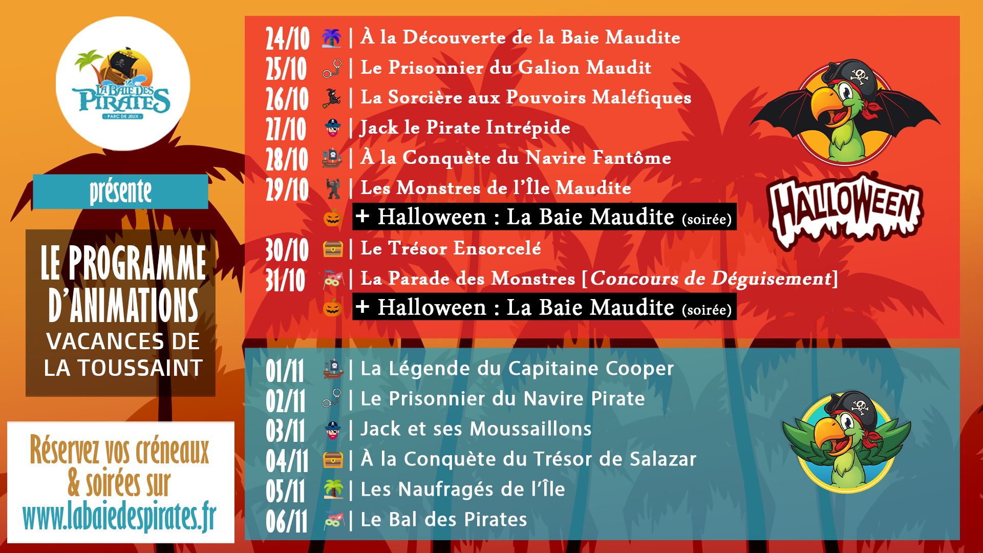 Pour les vacances de la Toussaint, La Baie des Pirates vous propose des animations uniques et gratuites chaque jour ✅